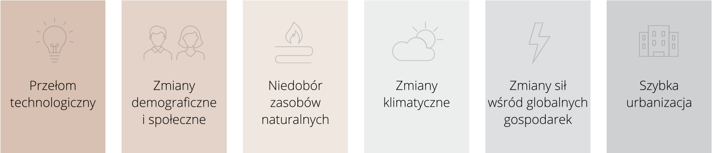 W wyniku analizy kluczowych globalnych trendów rynkowych, Strategia KGHM Polska Miedź S.A. opiera się na czterech kierunkach rozwoju: Elastyczność, Efektywność, Ekologia oraz E-przemysł.
