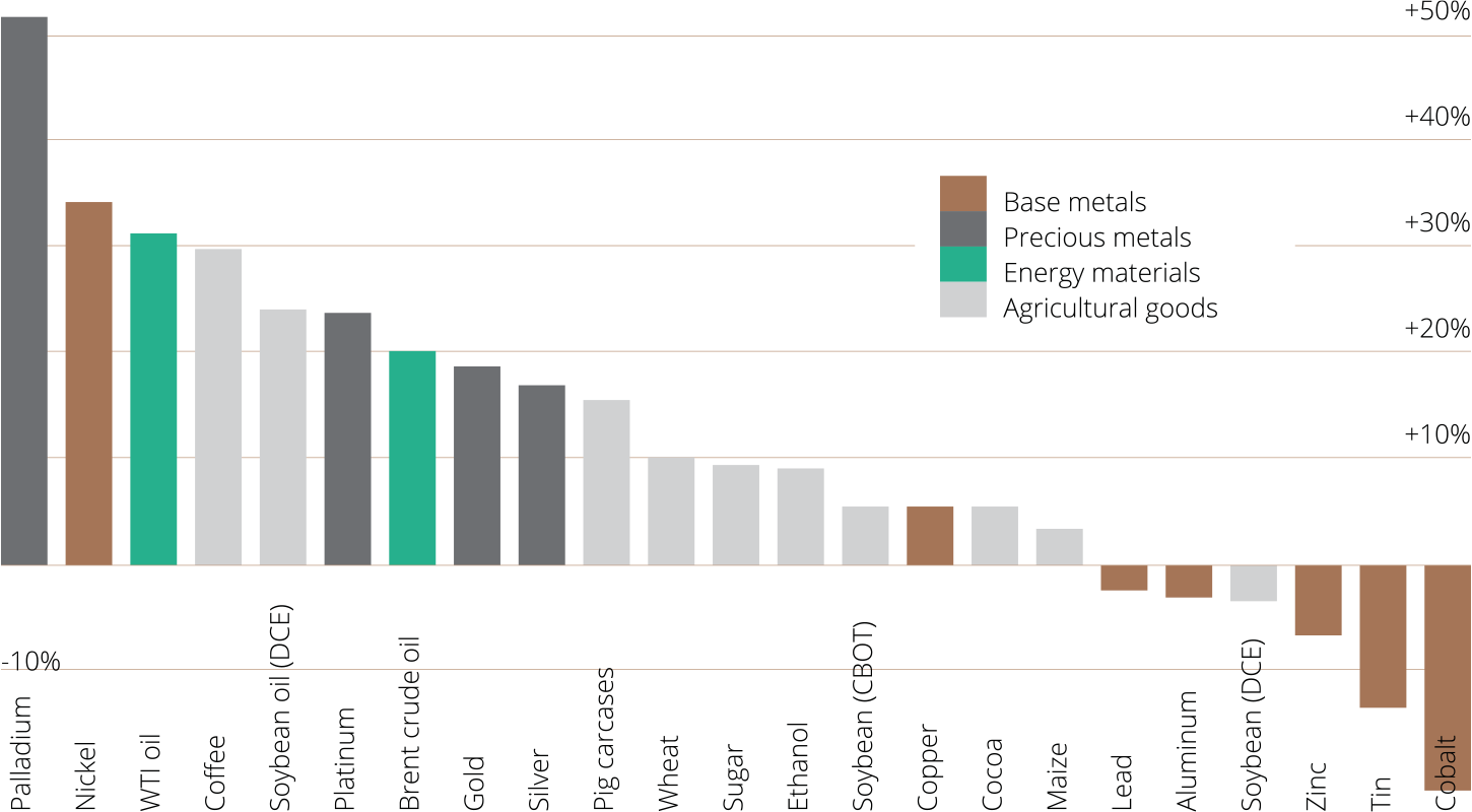 In 2019, the share price of KGHM Polska Miedź S.A. on the WSE rose by 7.5% and at the close of trading on 30 December 2019 amounted to PLN 95.58. During the same period the price of copper – the Company’s main product – recorded an increase of 3.2%, alongside an increase in the average USD/PLN exchange rate by 1.0%. At the same time the WIG index recorded a slight rise – by 0.2%, while the WIG20 and WIG30 indices fell respectively by 5.6% and 4.2%. The FTSE 350 mining index also rose, by 11.6% – an index comprised of companies from the mining sector, listed on the London Stock Exchange.