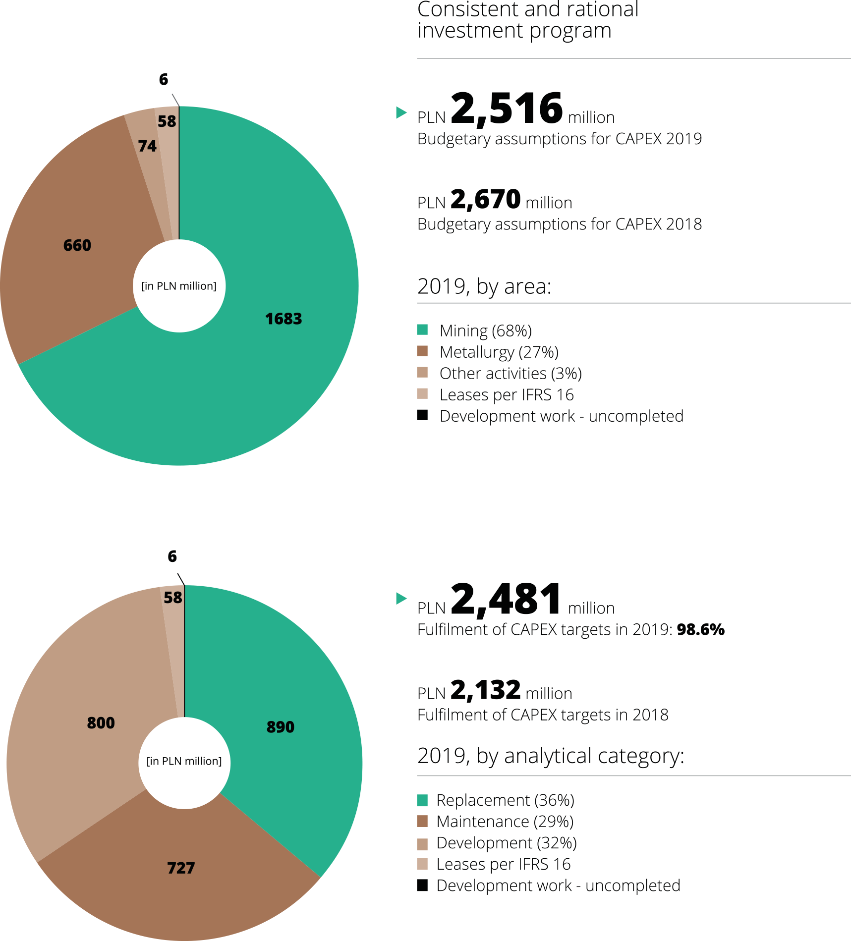 Projects related to maintaining mine production aimed at maintaining mine production on the level set in approved Production Plan (development of infrastructure to match mine advancement) represent 31% of total expenditures incurred.