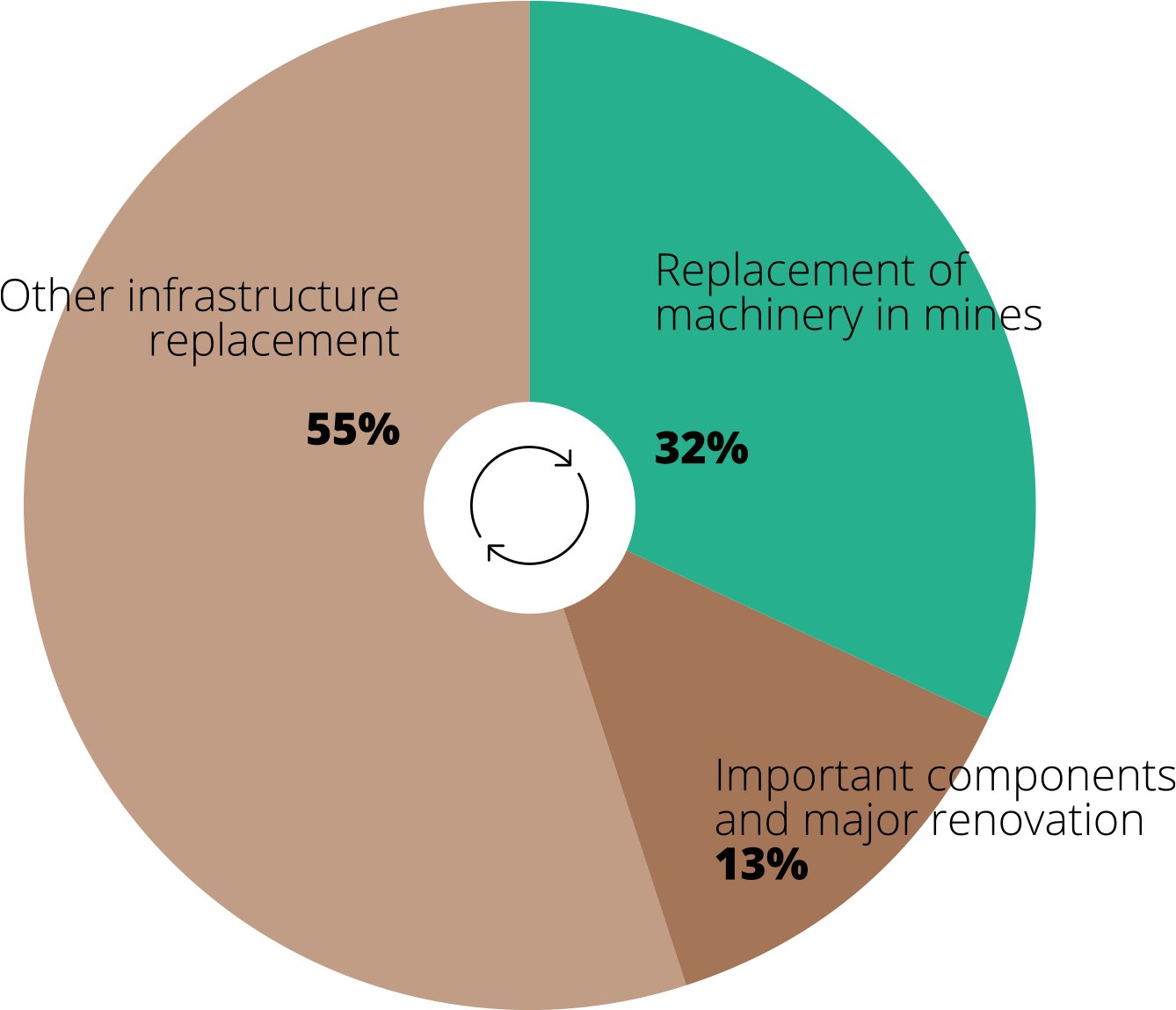 Projects related to the replacement of equipment aimed at maintaining production equipment in an undeteriorated condition, represent 36% of total expenditures incurred.