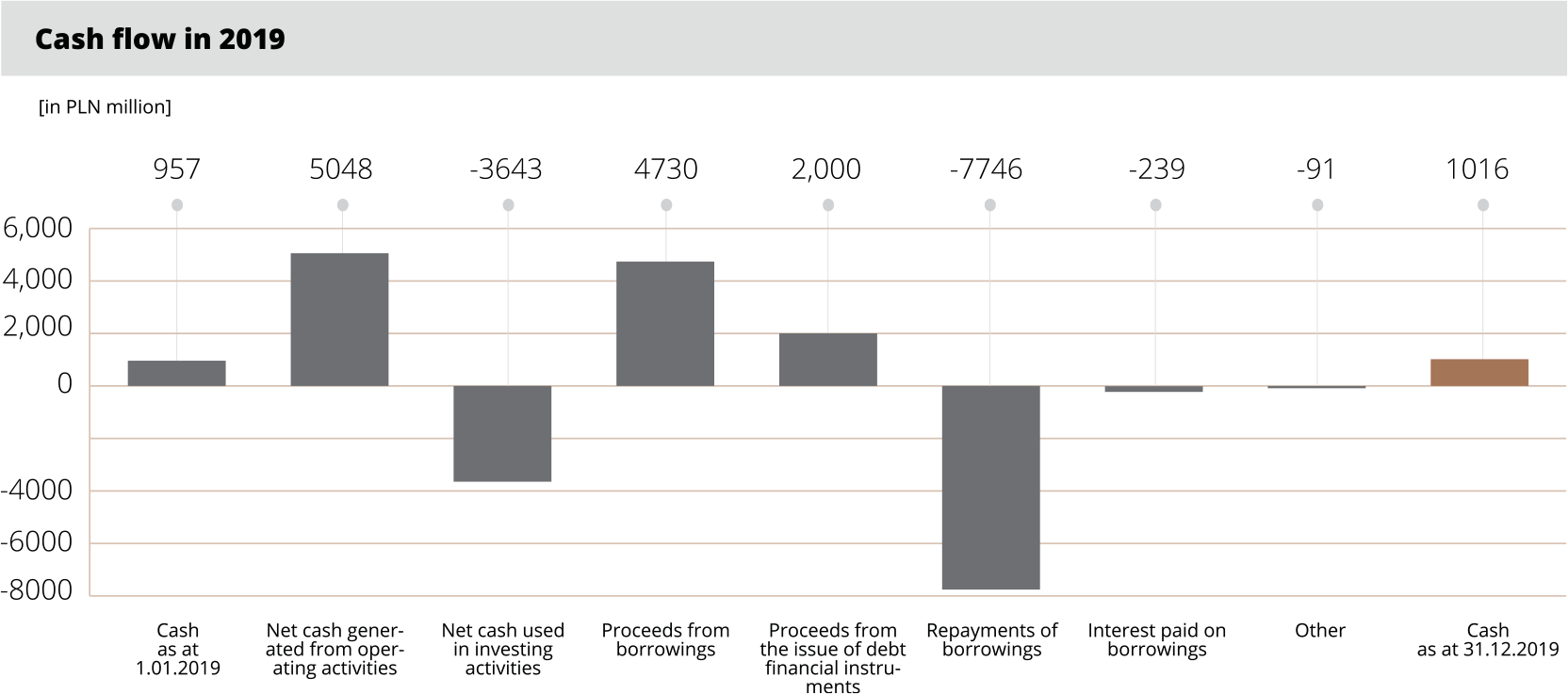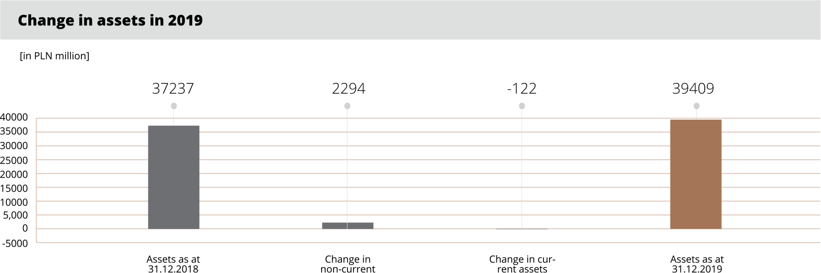 In 2019, capital expenditures on property, plant and equipment amounted to PLN 2,475 million and were 16% higher than in the previous year. Together with expenditures incurred on uncompleted development work, capital expenditures amounted to PLN 2,481 million.