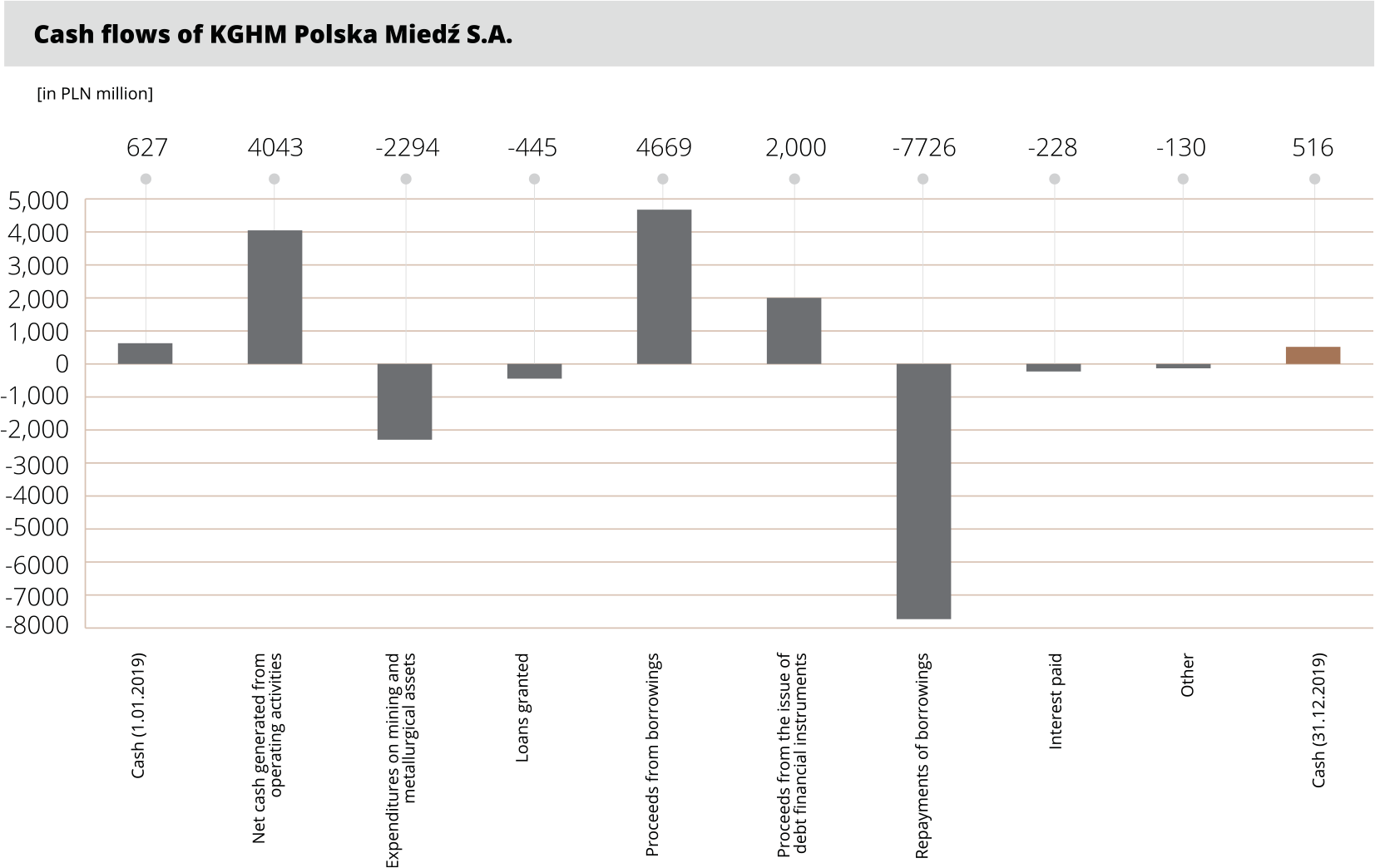 As a result the volume of copper in extracted ore was lower than in 2018 by 2.7 thousand tonnes of Cu and amounted to 449.3 thousand tonnes.