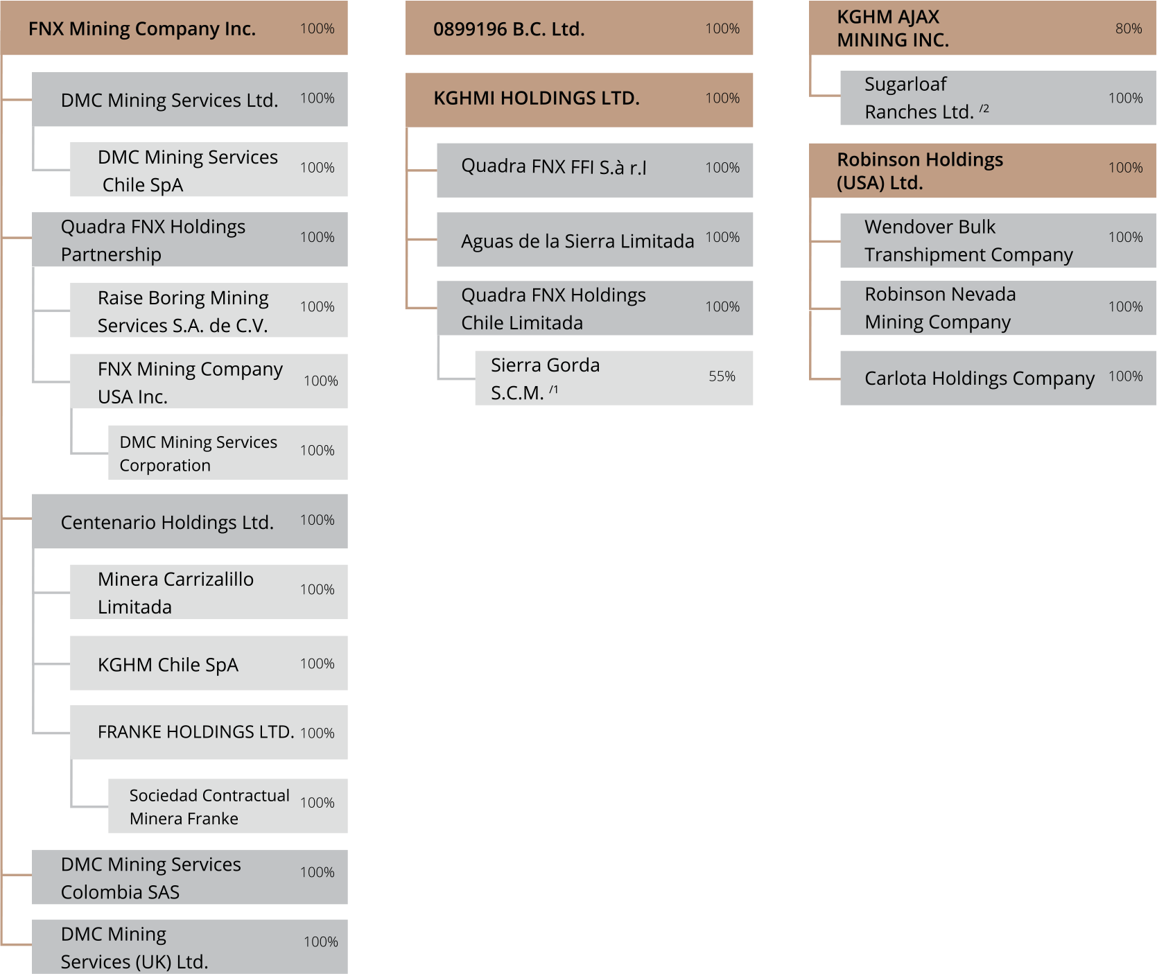 Some of these subsidiaries formed their own groups. The largest of them, both in terms of the number of members and the value of equity, is the KGHM INTERNATIONAL LTD. Group, the main assets of which are located in Canada, the United States and Chile. It was comprised of a parent entity and 26 subsidiaries. As at the end date of the reporting period, the KGHM Polska Miedź S.A. Group held a stake in two joint ventures – Sierra Gorda S.C.M. and NANO CARBON Sp. z o.o.