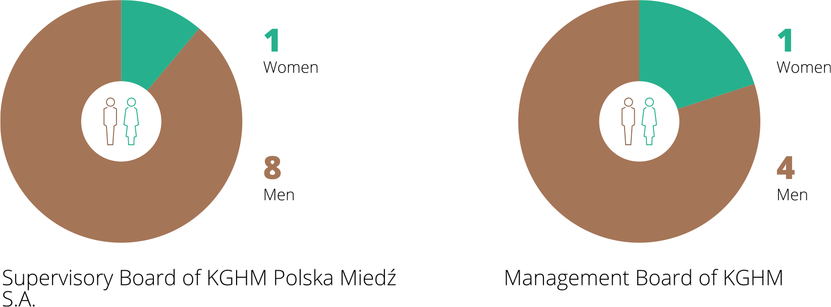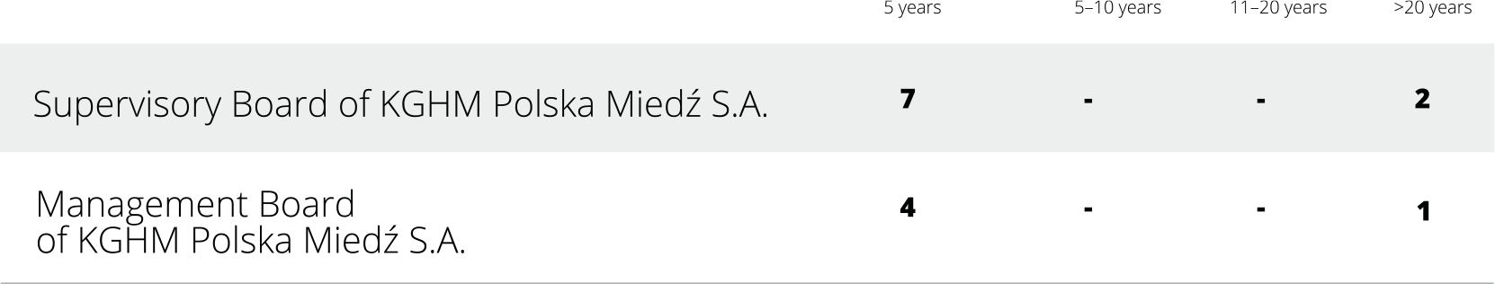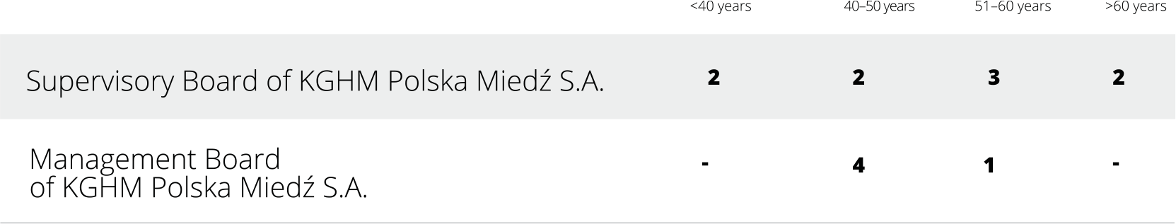 The management of diversity also applies to members of the Supervisory Board and Management Board of KGHM Polska Miedź S.A. The management and supervisory staff are diverse in terms of gender, age and experience: